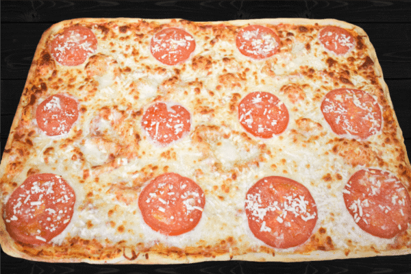 extra topping pizza First/mozzarella, sos de roșii, telemea, parmezan, roșii felii