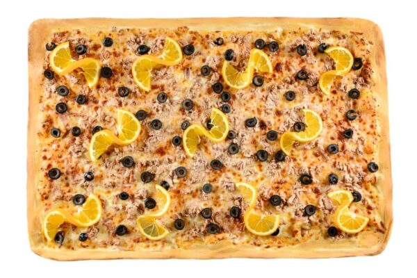 topping pizza First/mozzarella, sos de roșii, ton bucăți în suc propriu, lămâie, ceapă