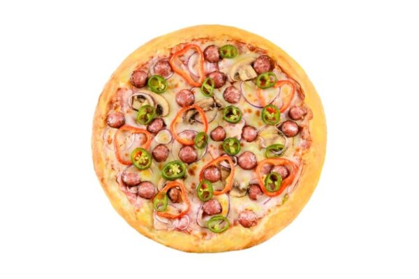 topping pizza First/mozzarella, sos de roșii, specialitate bacon, ciuperci, ardei iute, ardei gras,...